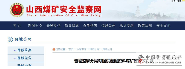 晋城监察分局对提供虚假资料煤矿处行政罚款