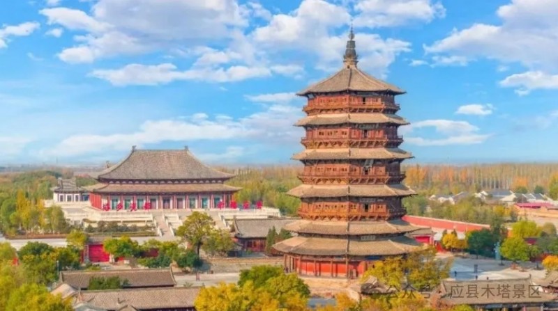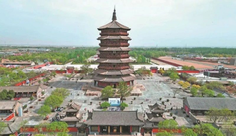 ▲航拍山西应县木塔—佛宫寺释迦塔