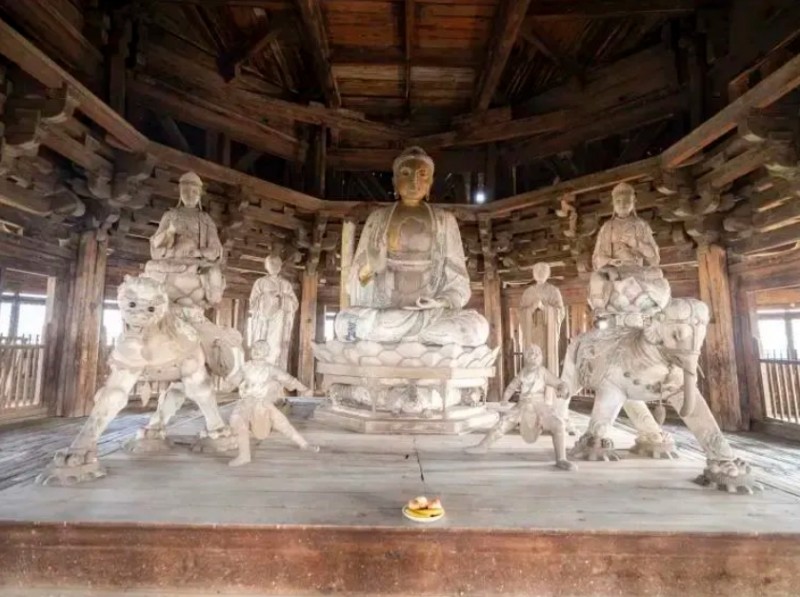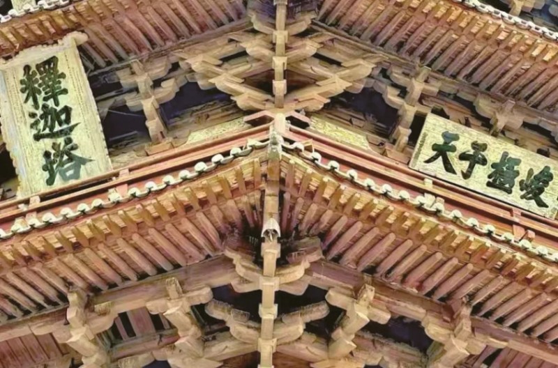 此外,应县木塔的每两层之间,都有一层由支撑木构成的环状结构,被屋檐遮挡、外部无法窥见,故称暗层。暗层之上再铺设梁、柱、枋及斗拱,是为明层。暗层、明层结合,构成了一张大桌子,五张桌子下大上小叠罗汉,最终形成了五明四暗的塔身,彰显九五之尊。实际上,它是五明五暗,屋顶也是暗层。