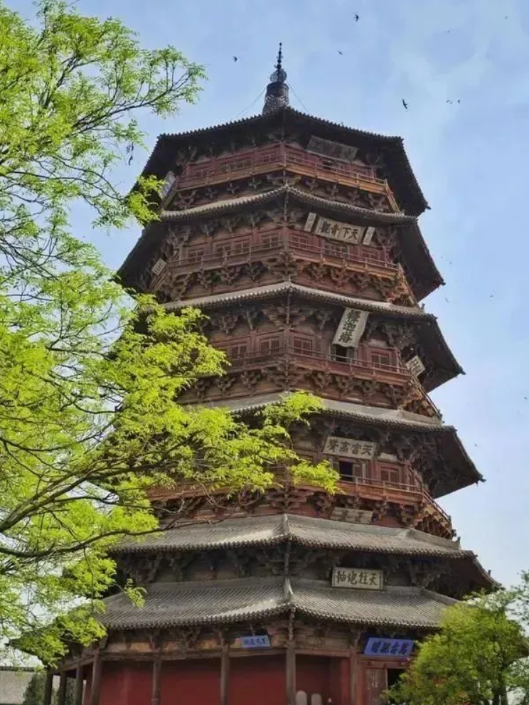 应县木塔全名佛宫寺释迦塔,建于辽清宁二年(公元1056年),金明昌六年(公元1195年)增修。这座中国现存最古老最高大的纯木结构楼阁式建筑,是古建筑中的瑰宝、世界木结构建筑的典范。