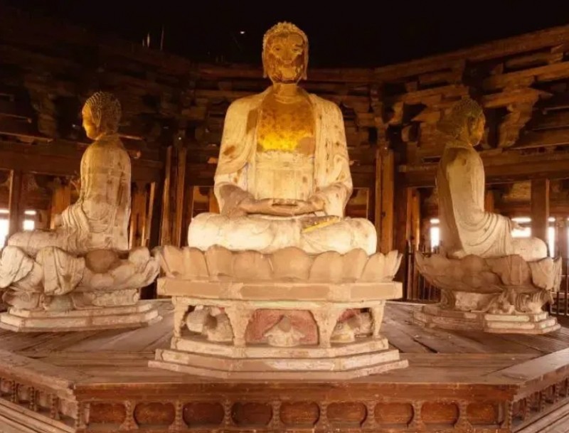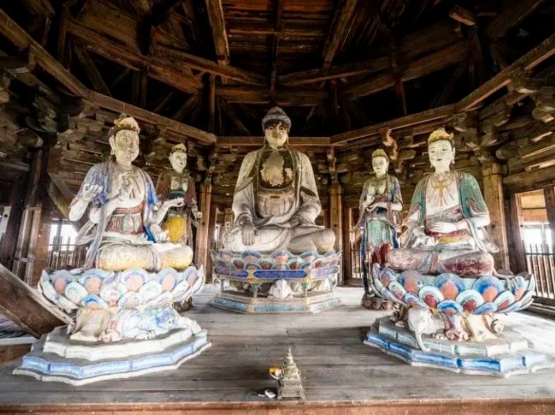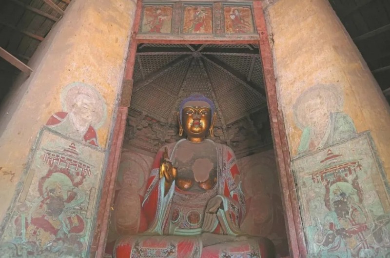 ▲释迦塔内保存完好的佛像。朱兴鑫 摄
