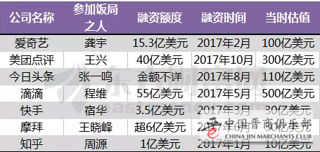 当然,在参加饭局的这些大佬说代表的公司中,有些还没有上市,但是却受到投资方的青睐,完成多轮融资。