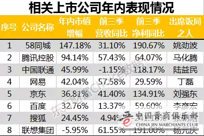 在出席饭局的众大佬中,共涉及8家中国上市公司,另外,已借壳成功的360目前还处在待证监会审批的状态中。