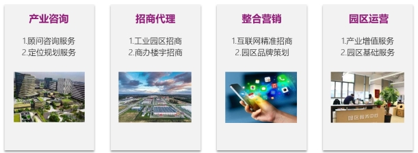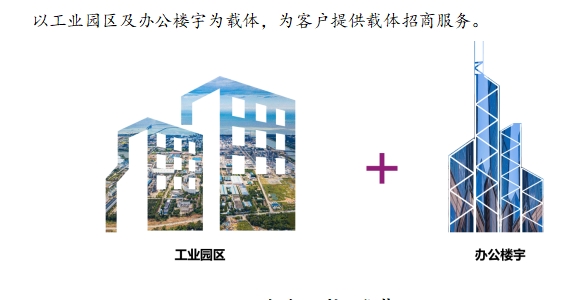 以工业园区及办公楼宇为载体,为客户提供载体招商服务。