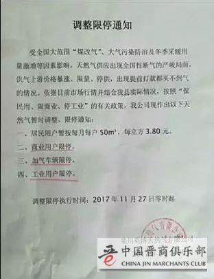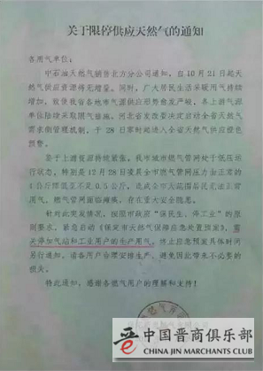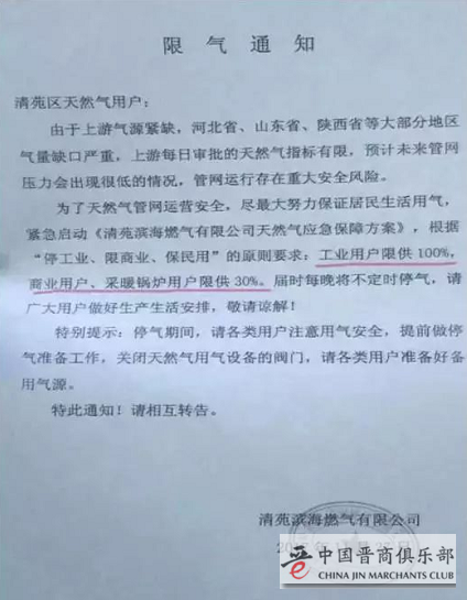 清苑滨海燃气有限公司对清苑区天然气用户《限气通知》文件(工业用户限停100%)分享如下: