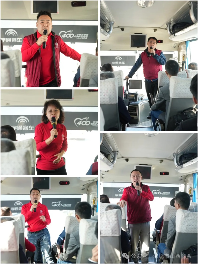清早,大家在深圳市山西商会集合,乘坐大巴前往广州。在大巴车上,深圳市山西商会宝龙联络站站长麻建伟、前海联络站站长贺玲、南头联络站站长高义宝、大芬联络站站长耿佩杰、观澜联络站站长都好、龙华三联联络站站长张亚岚分别介绍了各自所在的联络站,让大家更加了解深圳市山西商会设立联络站的初衷以及服务功能。