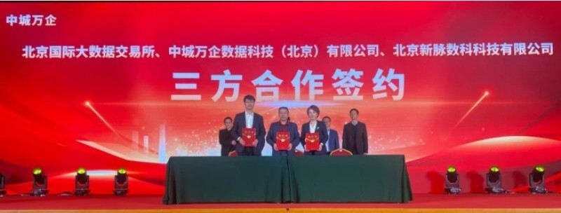 (签约人:左一为北京国际大数据交易所副总经理潘冲;中间为《中国企业报》集团数字化发展研究院执行院长彭一鸣;右一为北京新脉数科科技有限公司总裁李晶)