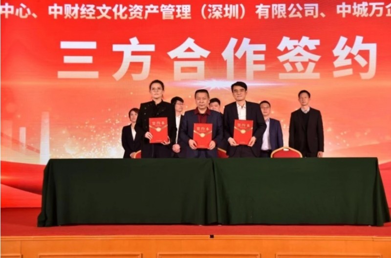 (签约人:左一为中财经国际数字经济研究院秘书长何睿;中间为《中国企业报》集团数字化发展研究院执行院长彭一鸣;右一为中智科学技术评价研究中心科技成果转化部主任彭发文)