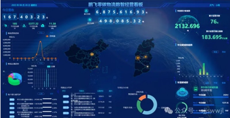 鹏飞集团自主研发并运营了覆盖全国的零碳智慧物流科技运营管理平台,为进入平台的物流公司及个体经营者提供车辆及货物、车辆调度、车货匹配、能源供给、货到结算、车辆处置等全生命周期服务,实现“零碳”装车“零碳”运输绿色物流。通过零碳智慧物流,提高大宗物流、重卡物流效率30%,降碳率达到100%。