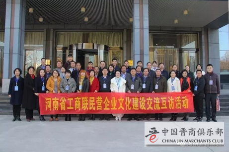12月8日,河南省工商联组织开展民营企业文化建设交流互访活动,在省工商联副主席赵纯武带领下,河南省晋商会(中国晋商俱乐部联合发起机构)秘书长韩建华、副秘书长衡静与30多位省直商会及民营企业负责人参加了此次活动。先后到雏鹰农牧集团股份有限公司、好想你枣业股份有限公司进行观摩考察,学习两家公司企业文化建设经验,座谈交流企业文化建设工作。
