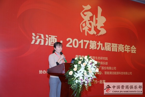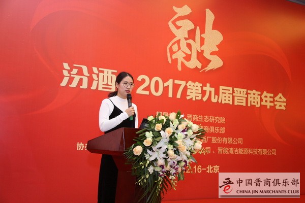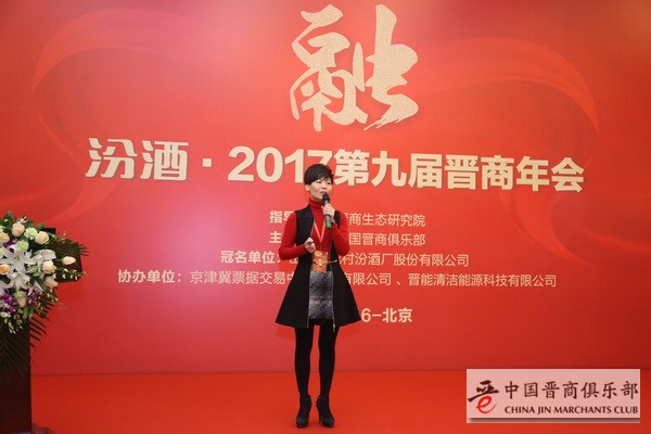中国晋商俱乐部常务副秘书长兼晋商年会总监马文青宣布“汾酒·2017第九届晋商年会”正式开幕。