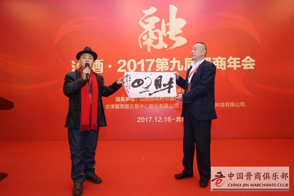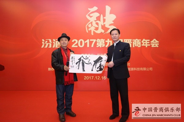 知名山西籍画家张跃华老师,在现场特别向中国晋商俱乐部联合发起机构轮值单位主席团以及第九届晋商年会的冠名和主办单位赠送了墨宝及国画作品。