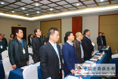 秘书长任蕴芳主持一届四次会员大会一届四次会员大会奏国歌,全体会员起立