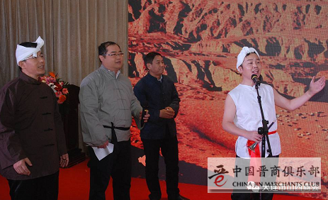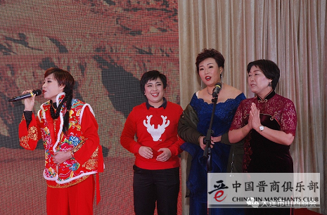 原汁原味的山西民歌对唱,一首《圪梁梁》仿佛将在场的所有观众带到了广袤的黄土高坡。商会会员温蓝头裹白毛巾、脚穿土布鞋和老乡孙小梅的身着花棉袄走上台来,仿佛看到了走西口年代的一对真挚淳朴的青年男女。会员黄锦莲、杭晓春、段建兵、樊志红与会员家属张红梅完美声线配合,带领观众体验着表里山河的沧桑巨变,演绎着对故乡热土的深深依恋。