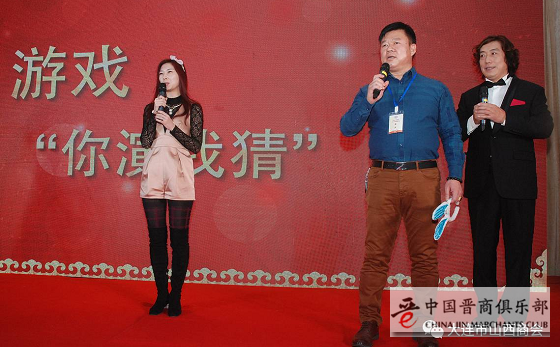 商会会员赵岩、牛瑞与会员家属安楠在年会主持中默契配合