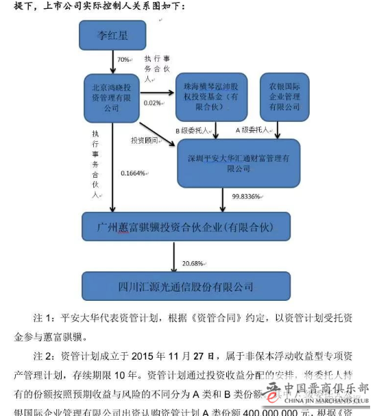 事情是这样滴。上个月,北京鸿晓与汇源通信大股东蕙富骐骥、汇垠澳丰签署协议,前者掏出100万元受让汇垠澳丰持有的蕙富骐骥100万元合伙份额,代表蕙富骐骥对外执行一切合伙事务,间接获得上市公司20.68%股份。交易完成后,汇源通信实际控制人从无到有,变更为北京鸿晓的实控人李红星。
