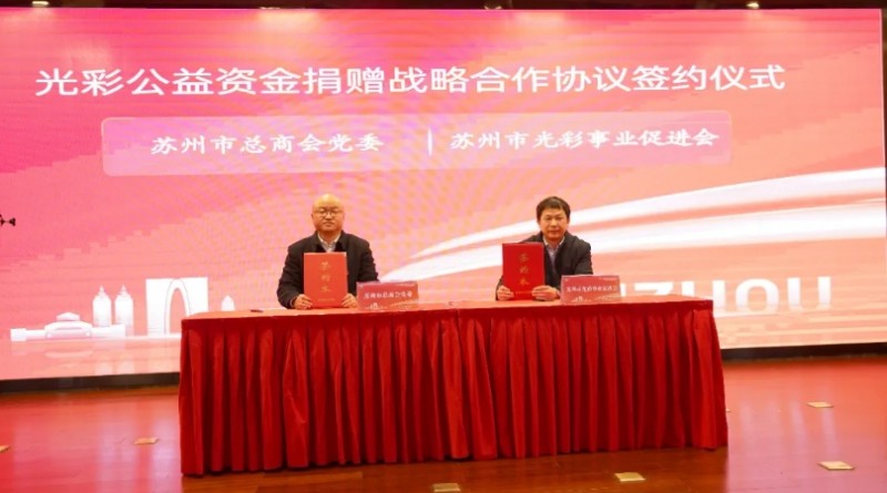 苏州市总商会党委与苏州市光彩事业促进会进行光彩公益资金捐赠战略合作协议签约。