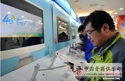 图为当地民众在山西太原一移动营业厅内体验4G网络。