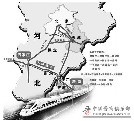 石济客专开通运营,将与津保铁路南北呼应,实现以京沪、京广两大高铁线路为骨架,高速铁路路网在京津冀区域内“井字”形连接和梯次性配置,形成以北京、天津、石家庄和德州为基点的京津冀“矩形”高铁环形网。河北衡水也因此进入了高铁时代。届时,衡水至石家庄之间的列车运行时间将压缩至1个小时之内,石家庄至德州间列车运行时间将压缩至90分钟,石家庄至济南间列车运行时间从现在的最快4个小时左右,压缩至120分钟左右。以此为新起点,燕山山脉以南、太行山以东,河北9个地市级城市将全部进入高铁时代。