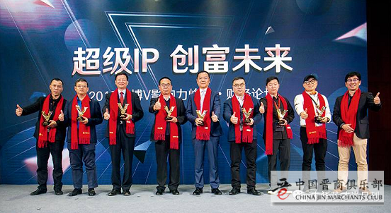 2017年12月6日,侯宁(左四)等2017年度“十大影响力财经大V”闪亮登台