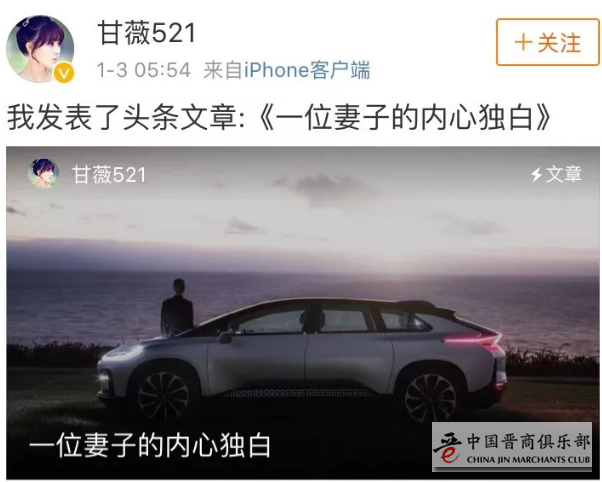 1月3日凌晨5:54,深陷舆论漩涡的贾跃亭妻子甘薇发表了标题为《一位妻子的内心独白》的头条文章,表示“对乐视体系公司债务危机引发的影响,给社会、政府、投资人、股民、供应商、员工都带来了巨大负面影响和损失,我代老贾向大家致以诚挚的歉意。”