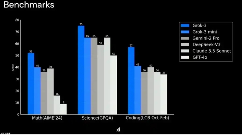 xAI在当天的直播中,马斯克与该公司的三位工程师一起进行了现场演示,Grok 3在数学、科学和编程基准测试中,Grok 3击败了谷歌Gemini、DeepSeek的V3模型、Anthropic的Claude和OpenAI的GPT-4o。