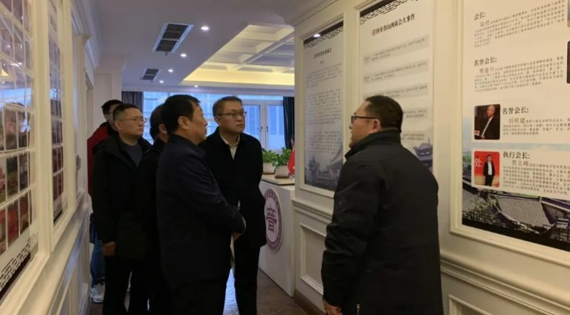 执行秘书长穆志力带领大家参观商会文化墙并介绍了商会发展历程。