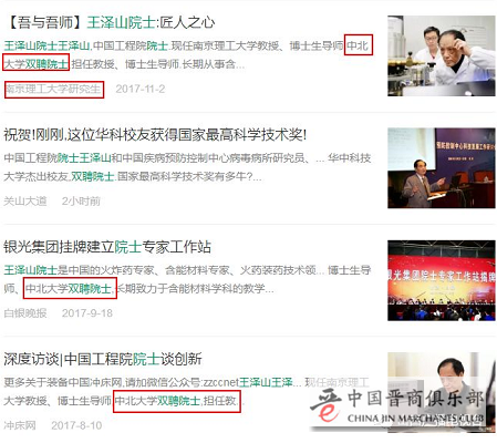 这个王泽山院士就是昨天获得大奖的王泽山院士!本台记者第一时间和中北大学党委宣传部联系获知:王泽山院士是该校的双聘院士!而在微信平台上,关于王泽山院士的很多文章都提到了他在中北大学的这个特殊身份: