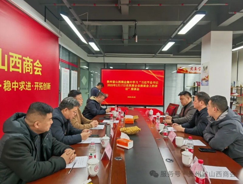2月22日,贵州省山西商会(晋商俱乐部联合发起机构)组织召开学习贯彻习近平总书记在民营企业座谈会重要讲话精神座谈会。会长刘学珍、常务执行副会长杨学文、常务副会长王明军,副会长朱保东、靳学军,秘书长孙志国,理事焦鹏、柳掌铂,副秘书长刘春雷参加了座谈会。