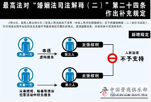 第一次在今年2月作出对此条款的补充规定,将夫妻一方与人串通虚构债务和因赌博、吸毒等违法犯罪活动产生的债务排除在外。