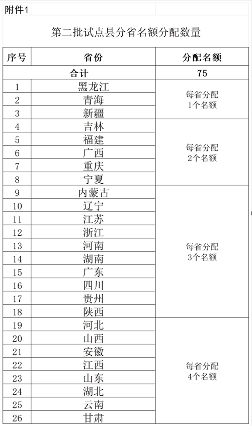 附件1:第二批试点县分省名额分配数量