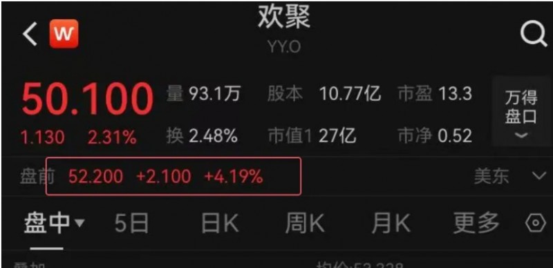 截至发稿,欢聚美股盘前涨4.19%,目前总市值27亿美元。