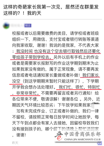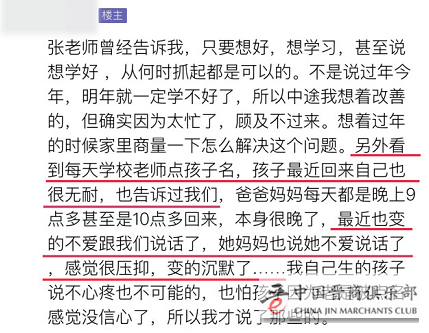 发帖的家长表示