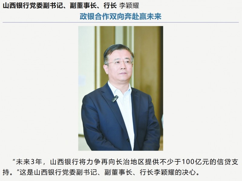 山西银行行长李颖耀应邀出席金融服务长治高质量发展“早春行”座谈会,表示:未来3年,山西银行将力争再向长治地区提供不少于100亿元的信贷支持