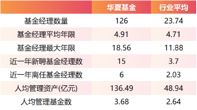 随着公司的发展,华夏基金的基金经理人数也在不断增加。根据 Wind 数据显示,2024 年12月,华夏基金近一年新聘 15位,离任6位,目前仍有 126位基金经理,在基金公司中排行第一 。基金经理人数的增加,反映了公司业务的不断拓展和投资管理能力的提升,也为投资者提供了更多的选择。