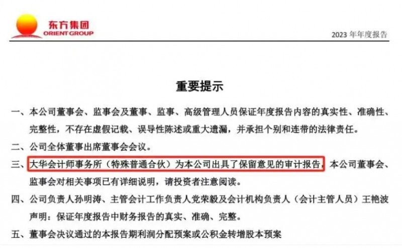 但在2023年财报中,大华会计师事务所出具了保留意见的审计报告,主要涉及包括,一是截止2023年年报批准报出日,公司控股股东东方集团有限公司在龙江银行股份有限公司哈尔滨龙腾支行4.54亿流动资金贷款到期未偿还、正在与银行协商偿付安排或者展期;二是对于房地产合作开发项目的未来可收回金额存在较大不确定性。