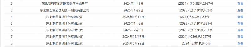 此外,中国执行信息公开网显示的信息来看,东北制药旗下沈阳第一制药有限公司、东北制药集团沈阳市医疗器械三厂都被列入了失信被执行人。