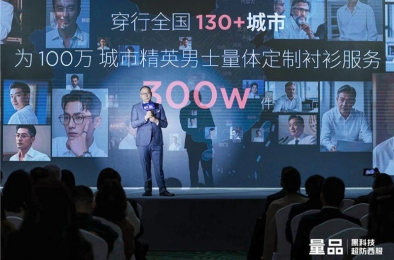 发布会上,领英科技集团董事长朱家勇,携量品黑科技超防西服登上舞台,阐述研发背景、目标受众及其对男装市场的革新意义。朱家勇从“量品十年 专研一件事”谈起,介绍了十年来1000位量体师穿行全国130+城市为100万城市精英量体裁衣,致力于做一件有温度的衬衫的背景。