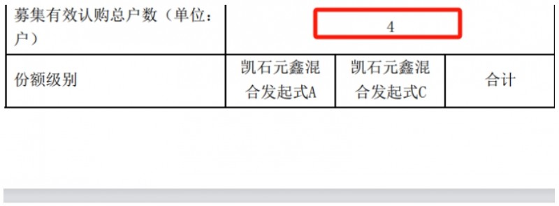 根据成立合同,该基金只获得4人认购,且均是该公募从业人员,总规模1061.3881万元。其中,凯石元鑫混合型发起式A规模1060.8881万元,C规模则只有5000元。