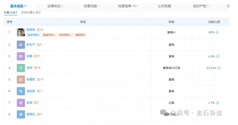 而李琛的另一个身份则是公司第二大股东。天眼查显示,公司大股东为陈继武,也是公司董事长,持股65%;而李琛则持股23.63%,是公司董事兼总经理。