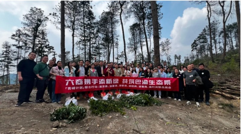 3月12日植树节当天,重庆市山西商会(晋商俱乐部联合发起机构)联合北京、湖北、广西、安徽等五省市商会及时尚精品产业商会共同举办的"六商携手添新绿,共筑巴渝生态景"主题植树活动,在北碚缙云山汪家大院生态区圆满举行。