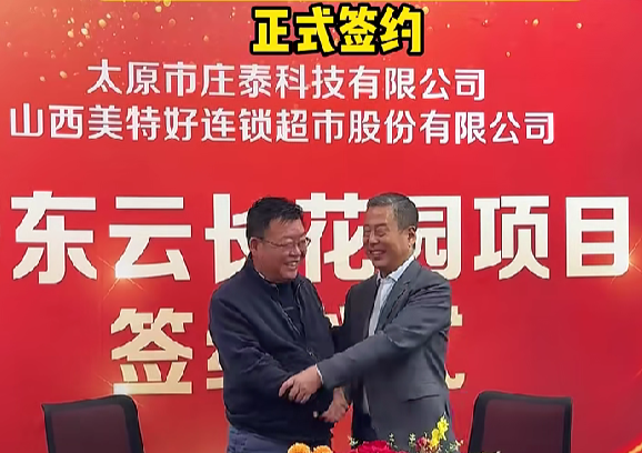 近日,山西美特好集团与太原庄泰科技签署战略协议,双方将联合打造“府东云长花园项目”,以社区邻里中心为定位,创新融合“食品超市+食品天台”业态,构建一站式全场景生活服务空间。美特好集团董事长储德群、太原市庄泰科技有限公司董事长王琪代表双方签署框架协议。