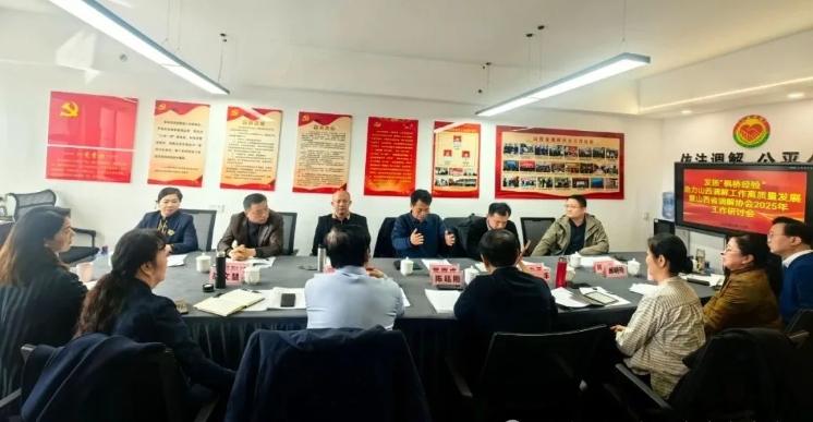 会上,参会人员围绕如何发扬“枫桥经验”助力调解工作高质量发展这一关键议题展开研讨。广调委执行主任苏丽平,副主任韩飞,专家委专家田丰、郝晓玲分别结合自身专业领域与调解实践经验,积极建言献策。经过充分的交流讨论,会议明确了推动山西调解高质量发展将在六大重点方向着力加强:一是加强政策支持,提升调解工作法治化水平;二是加强组织建设,提升基层社会治理现代化水平;三是加强队伍建设,提升调解工作专业化水平;四是加强文化建设,提升调解品牌宣传力水平;五是加强基层调研,提升调解实战经验水平;六是加强服务能力,提升护航高质量发展水平。