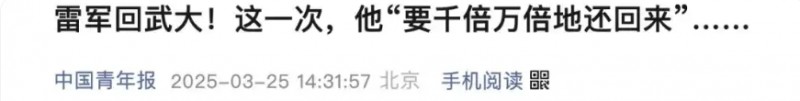 3月25日,雷军晒出了自己在武大的樱花树下的照片,并更换了社交网站头像。
