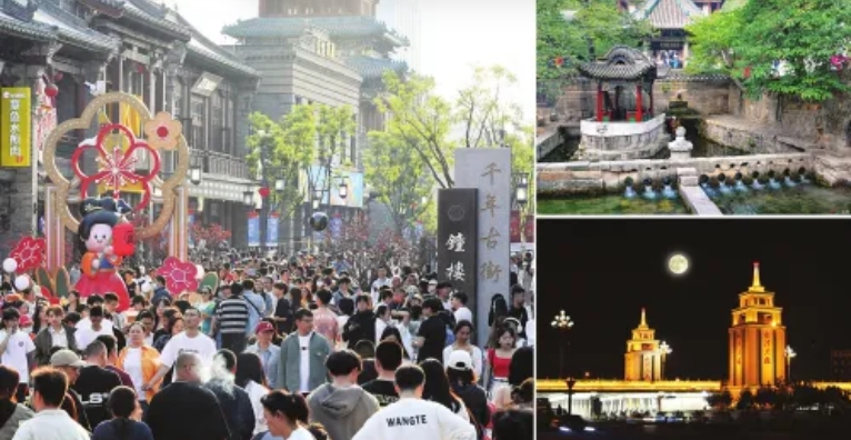 随着清明假期的临近,自驾游和自由行的热度不断攀升。在自驾游热门目的地榜单上,太原市位列第10名,受到各地自驾游游客的青睐。左图为钟楼街人流如织,右上图为晋祠难老泉,右下图为迎泽大桥。