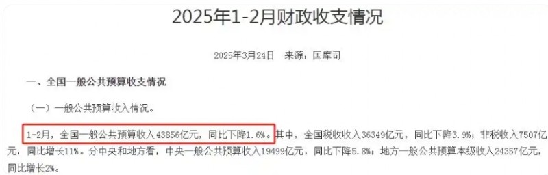 近期,财政部披露了2025年1-2月我国财政收支情况,先看下关键数据。