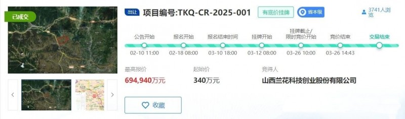 3月26日,据山西省自然资源网上交易平台最新信息,山西兰花科技创业股份有限公司(简称:兰花科创)最终以69.49亿元成功竞得山西省阳城县寺头区块煤炭探矿权。据悉,该探矿权面积15.4903平方千米。起始价340万元,该探矿权最终成交价格增长了近2043倍。