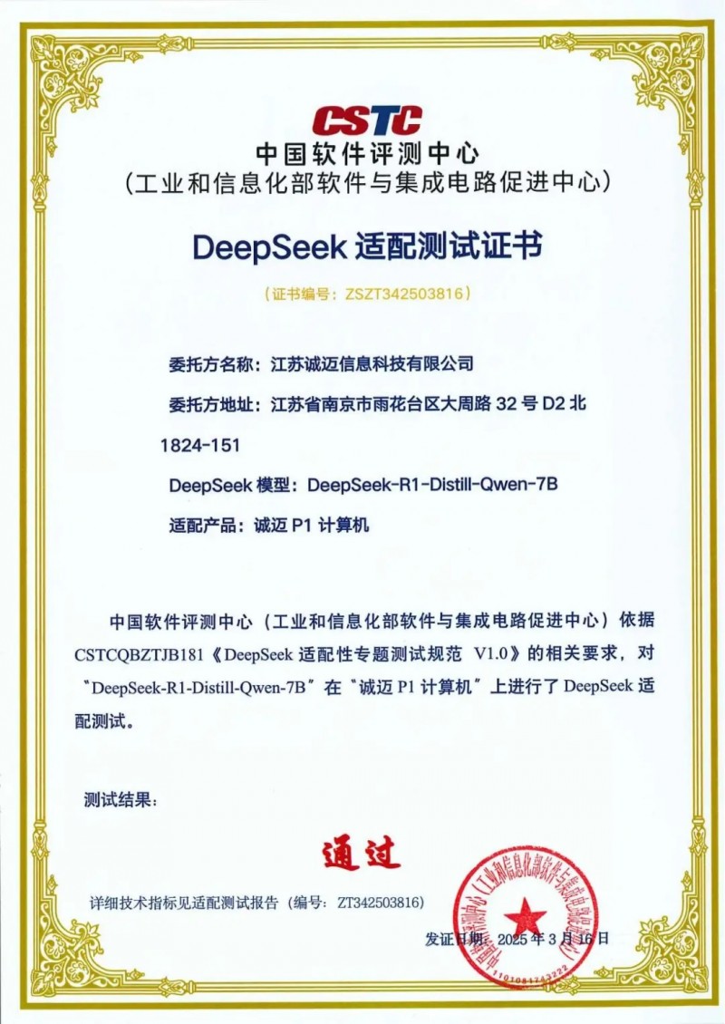 今年,诚迈信创电脑还推出了三大新功能:支持DeepSeek本地部署、“汉联”生态适配系统和多屏显示,大幅提升用户体验。作为首批通过中国软件评测中心DeepSeek适配认证的产品,诚迈信创电脑已获得官方证书;通过“汉联”可以稳定运行Windows海量应用,保障国产化替代进程平稳推进;多屏显示功能支持用户为关键应用分配独立屏幕,减少窗口切换频次。