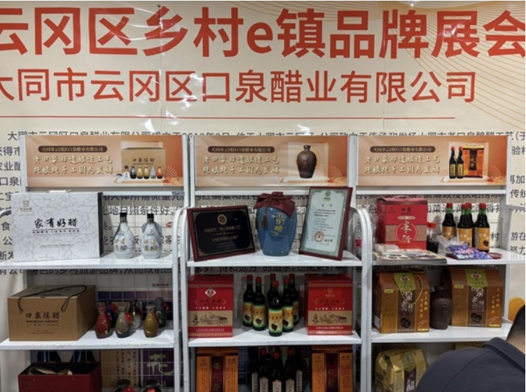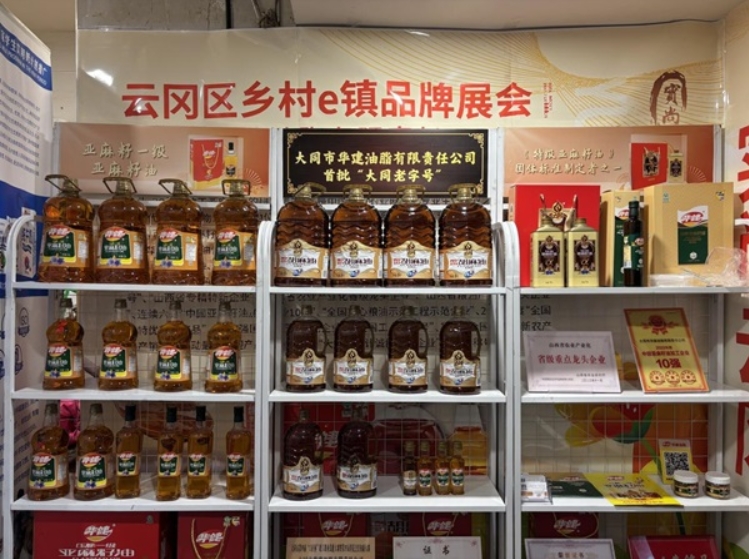 云冈区乡村e镇携大同市牧同乳业有限公司、大同市华建油脂有限责任公司、大同市云冈区口泉醋业有限公司 参加展会。展位上,胡麻油、亚麻籽油、奶制品、口泉醋等一系列纷纷在农特产品集中亮相。