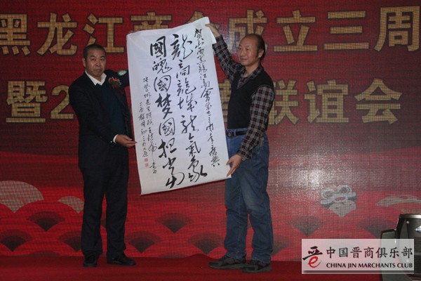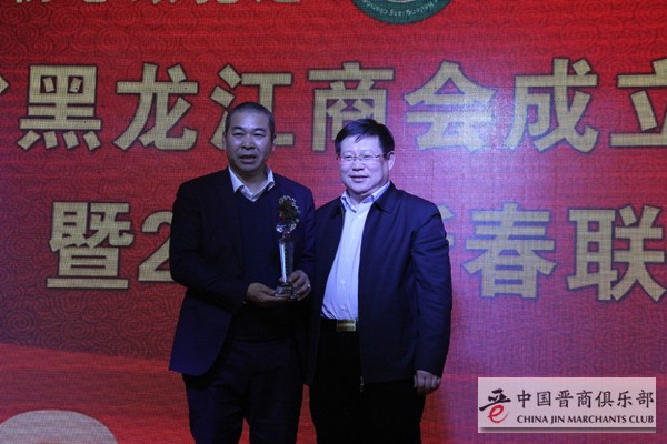 山西省工商联副主席梁荣为山西省黑龙江商会会长张迎春颁发“龙商模范奖”